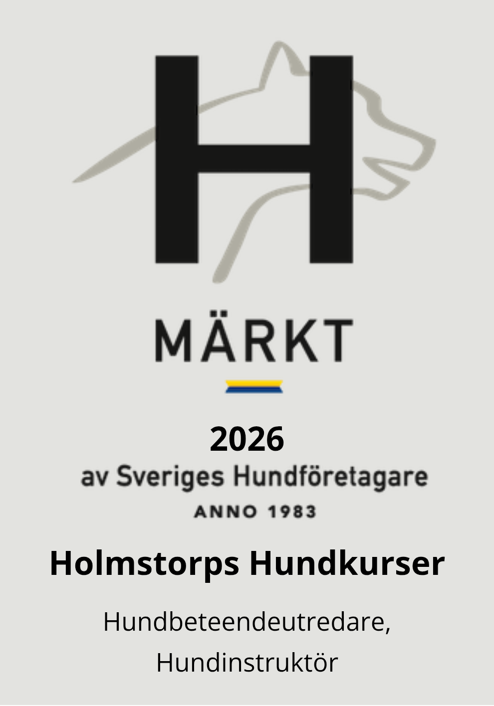 Företaget är H-märkt och medlem i Sveriges Hundföretagare, vilket innebär att vi följer branschens etiska riktlinjer och arbetar med moderna, belöningsbaserade metoder.